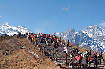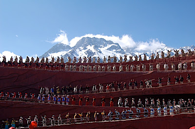 第三天的重點被強調在玉龍雪山下的「印象麗江」大型表演秀,這個圓形劇場以玉龍雪山為背景,確實有著不錯的效果,不過感受沒那麼深,反倒是夜晚的麗江,讓人流連忘返,走得真不是時候(夜已深)。話說回來,這「印象麗江」也是張藝謀先生的大作,本人的攝影功力不夠彰顯出那份豪邁的演出,歡迎連結到網站上去觀賞珍貴的照片。