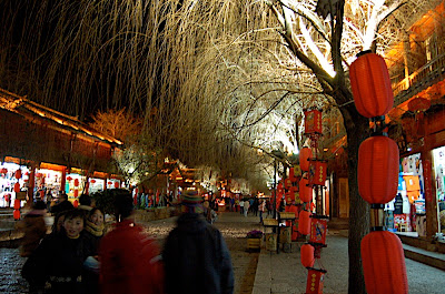 夜晚的麗江城,少了雪山景,多了燈光的裝扮,夠俏!