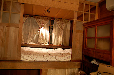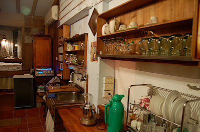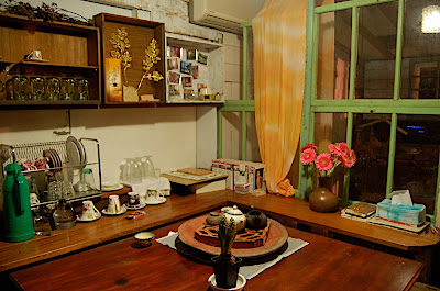 這間獨棟的民宿有著主人獨特的巧思佈景,有許多古色古香的擺設,讓人很快地就進入時光隧道,六年級生以上的世代,見到這些物品,肯定會有許多感受油然而生。女主人很熱情親切,交代注意事項後,便把鑰匙留給我們自行離去。因此,整棟包含一樓、二樓以及所有的用品都任由我們使用,有了這個小窩,逛遊九份就不會有需要趕回家的壓力,唯一的掃興就是天候。假若能夠在天氣晴朗時,相邀眾多夥伴一起來到這裡,無論是閒逛九份,或者擠在小屋子中煮火鍋、泡茶、打牌、閒聊,都是不錯的休閒方式。