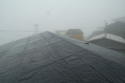 細雨濃霧的九份窗外